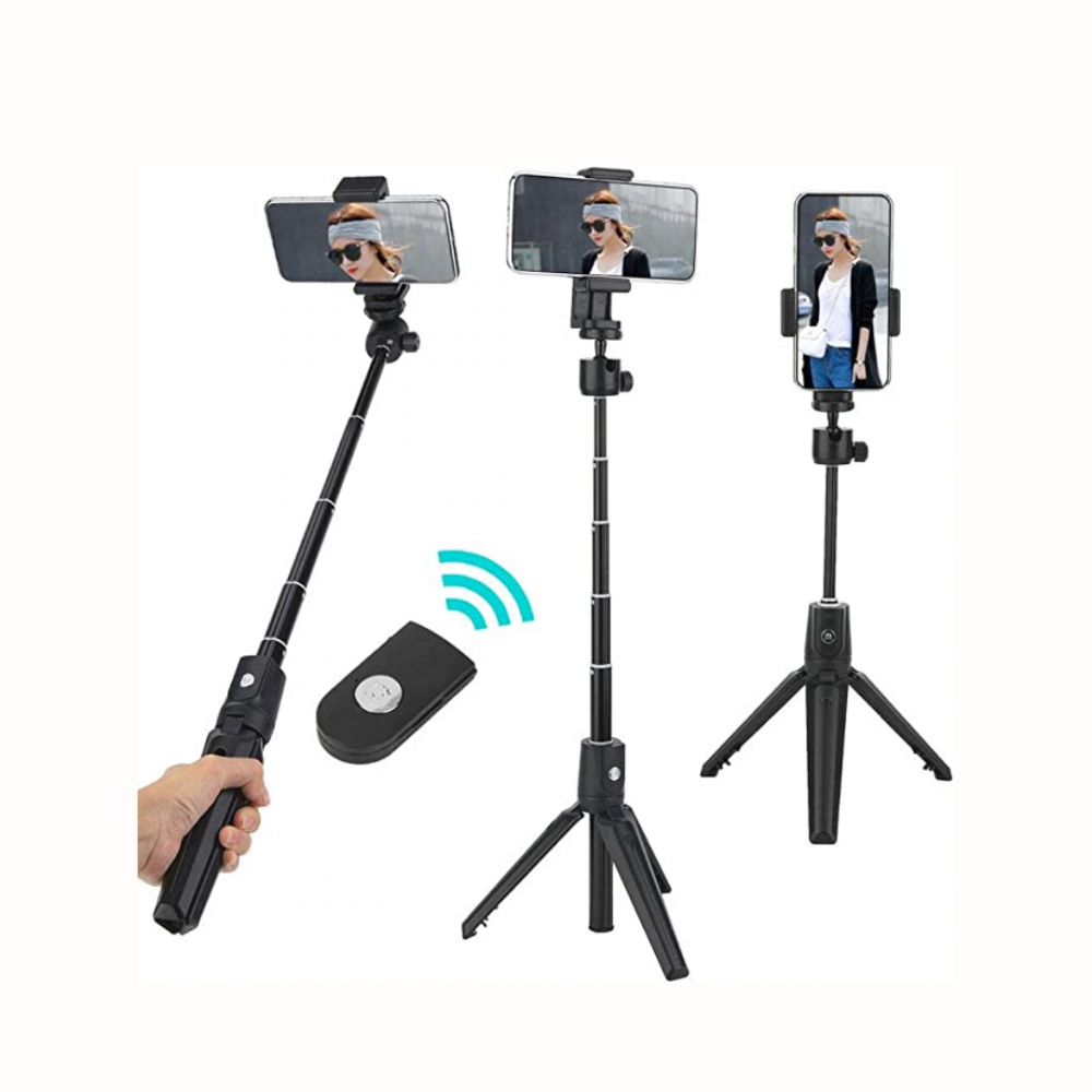 Multifuncional portátil para bastão de selfie de Bluetooth para telefone móvel Android/iOS, Suporte para tripé extensível leve Grampo para celu